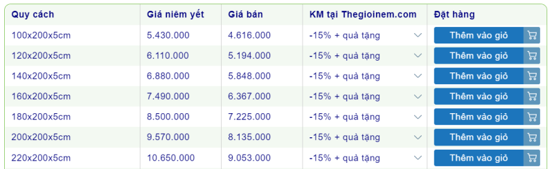 Nệm Vạn Thành 15cm giá bao nhiêu?