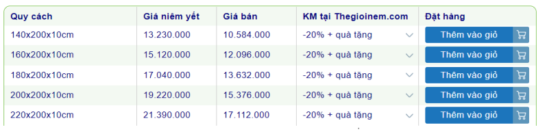 Nệm Vạn Thành 20cm giá bao nhiêu?