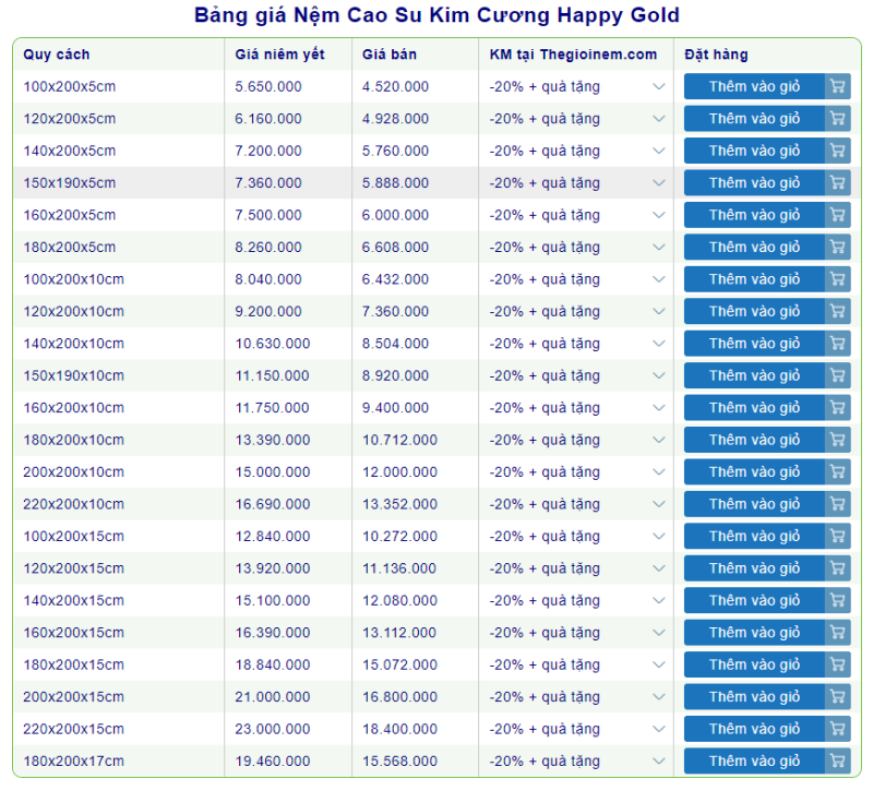 - Nệm cao su Kim Cương Happy Gold