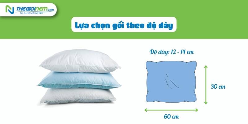 Khi chọn lựa gối nệm thì độ dày lý tưởng tốt cho sức khỏe giấc ngủ là khoảng 12cm - 14cm, chiều dài 60cm và chiều rộng khoảng 30cm. Không nên chọn gối quá dày sẽ gây đau nhức kinh niên dẫn đến khó thở, khó ngủ, thậm chí có trường hợp ngừng thở khi ngủ.