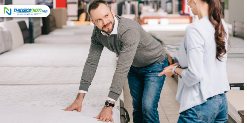 - Dành thời gian để trải nghiệm sản phẩm trực tiếp tại cửa hàng: Để chọn cho mình sản phẩm phù hợp nhất, bạn hãy dành chút ít thời gian đến tận cửa hàng để sờ và nằm thử nệm, cảm nhận độ đàn hồi và nhận được những lời khuyên từ đội ngũ nhân viên chuyên nghiệp.