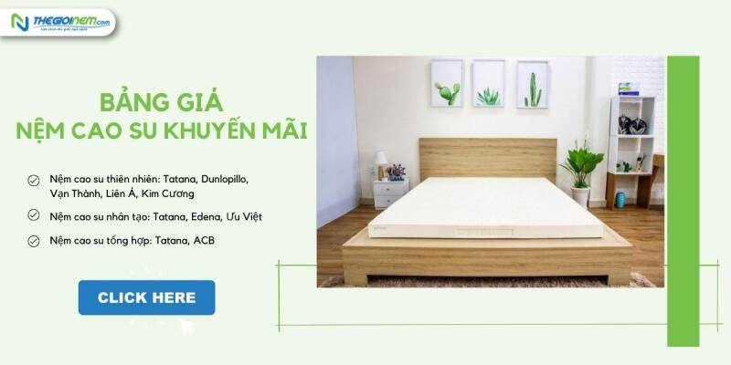 Thegioinem.com cập nhật bảng giá nệm cao su khuyến mãi mới nhất năm 2022. Bạn đang có nhu cầu nhu nệm cho bản thân và gia đình hãy xem qua bài viết bên dưới để hiểu rõ hơn về giá nệm cao su năm nay cùng những chương trình khuyến mãi hấp dẫn nhé!
