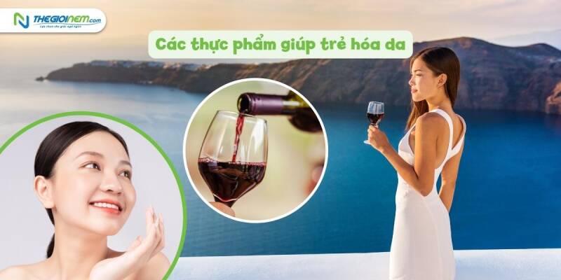 Rượu vang đỏ luôn là thực phẩm gắn liền với công dụng chống lão hóa da và trẻ hóa làn da vì nó chứa một lượng lớn chất chống oxy hóa có thể chống lại các gốc tự do. Một trong những chất chống oxy hóa điển hình có trong rượu vang đỏ là resveratrol, một hợp chất polyphenolic tự nhiên kích thích enzyme sirtuin, liên quan đến sửa chữa DNA và tái tạo tế bào.
