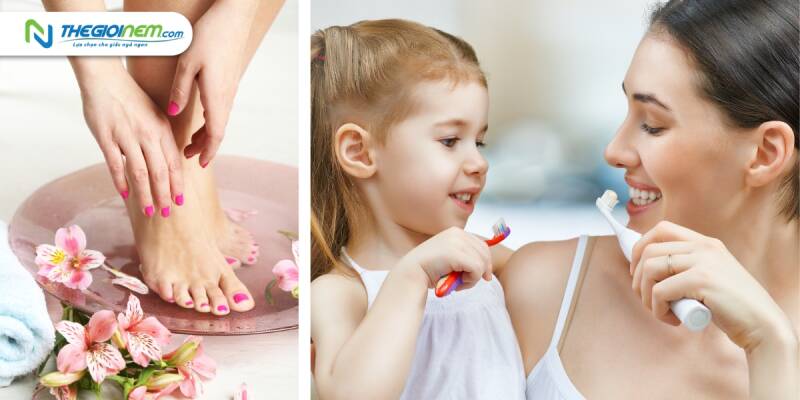 - Vệ sinh cá nhân: Cơ thể bao gồm tay chân, răng miệng, đầu tóc, … phải được vệ sinh sạch sẽ trước khi ngủ. Điều này giúp tiêu diệt các vi khuẩn và đánh bay bụi bẩn bám trên thân thể gây ô nhiễm không gian sống và ảnh hưởng trực tiếp đến sức khỏe chúng ta.