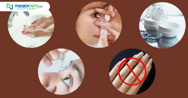 • Tháo lens và làm sạch: Tháo lens khỏi mắt và làm sạch chúng bằng dung dịch dành cho lens. Đảm bảo bạn đã rửa sạch tay trước khi tiếp xúc với lens.