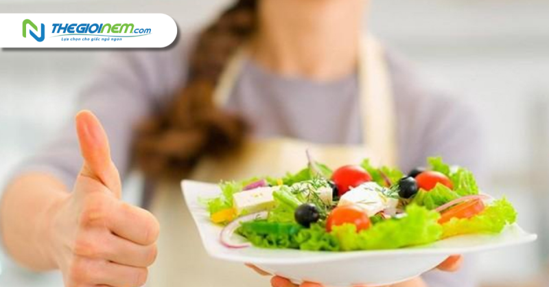 Thức ăn phải đảm bảo đầy đủ chất theo bảng kim tự tháp thức ăn, đặc biệt phải bổ sung cho cơ thể đầy đủ chất từ rau củ, trái cây, và hấp thụ nguồn protein lành mạnh.
