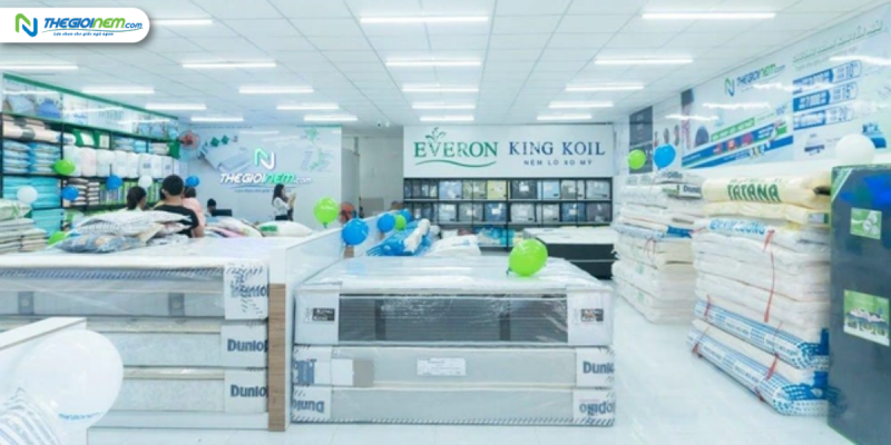 Liên hệ ngay Thegioinem.com, chúng tôi với kinh nghiệm trên 10 năm trong ngành sản xuất phân phối chăn-ga-gối-nệm chính hãng đến từ nhiều thương hiệu nổi tiếng như Everon, Vạn Thành, Đồng Phú, Dunlopillo, Liên Á, King Koil,…