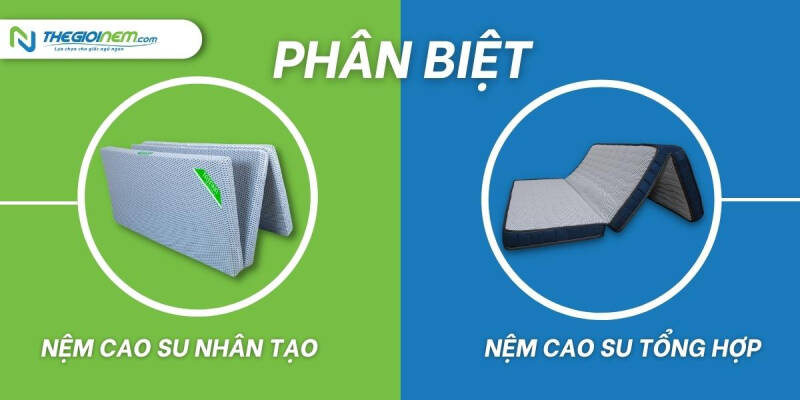 Nệm cao su nhân tạo và cao su tổng hợp đều được làm từ mút cao su nhưng được sản xuất theo công nghệ khác nhau. Nhìn chung cả hai sản phẩm đều thân thiện với môi trường, đảm bảo sự trải nghiệm tốt cho người dùng.. Tuy nhiên, giữa hai dòng sản phẩm sẽ có nhiều điểm khác nhau, về nguồn gốc, đặc tính cũng như giá cả.